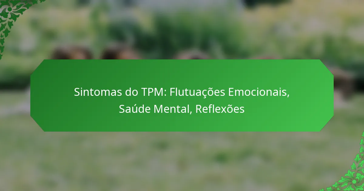 Os sintomas emocionais da TPM podem afetar significativamente o humor e o bem-estar mental, manifestando-se frequentemente como mudanças de humor, irritabilidade, ansiedade e sentimentos depressivos. Estes sintomas surgem tipicamente na fase lútea do ciclo menstrual e podem impactar a vida diária e os relacionamentos.